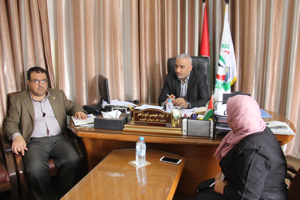 التقى مدير عام ديوان وزير الصحة د. اياد ابو زاهر بنائب مدير عام الادارة العامة للتفتيش بوزارة الداخلية والأمن الوطني العقيد سالم أبو سعادة، وذلك لبحث سبل تفعيل وتطوير آليات العمل والتواصل بين الوزارتين بما يحقق تقديم أفضل خدمة للجمهور، ولتوطيد العلاقة بينهما.