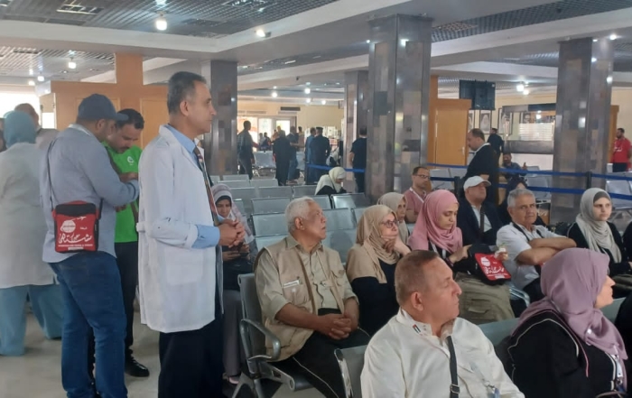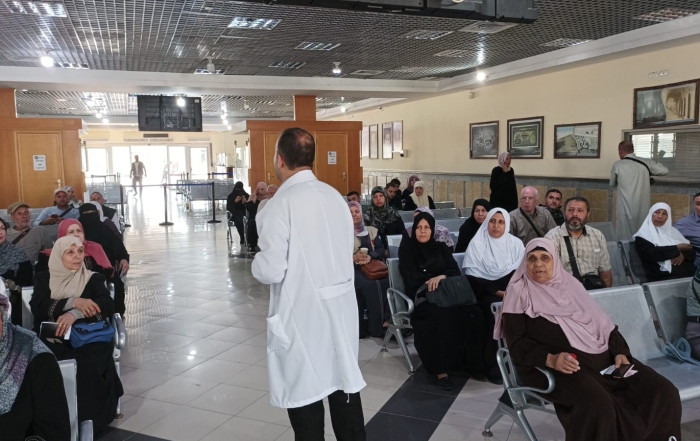فريق التثقيف الصحى يقدم ارشادات توعية للحجاج