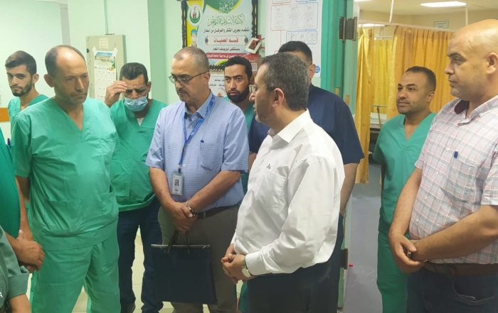 الصحة مدير عام المستشفيات د.محمد زقوت يطلع على استعدادات الطواقم الطبية بمستشفى أبو يوسف النجار أثناء العدوان الصهيونى ويثمن جهودهم فى الميدان07/08/2022|