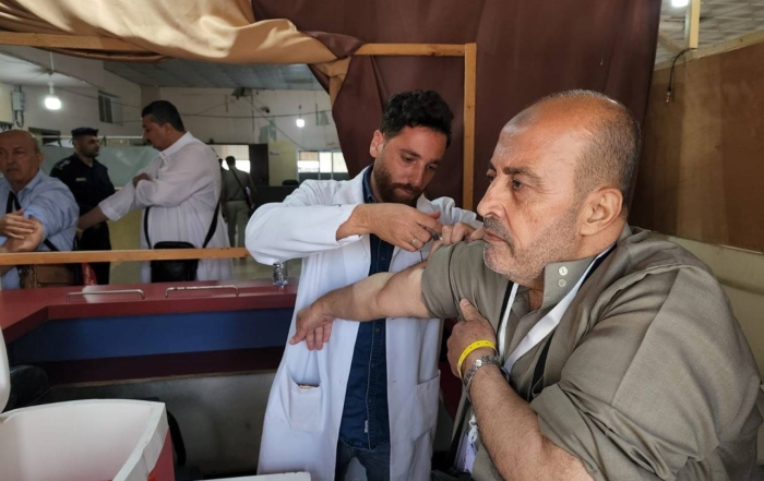 وزارة الصحة تباشر عملية التطعيم لحجاج بيت الله الحرام لهذا العام قبيل مغادرتهم عبر معبر رفح.21/06/2022|
