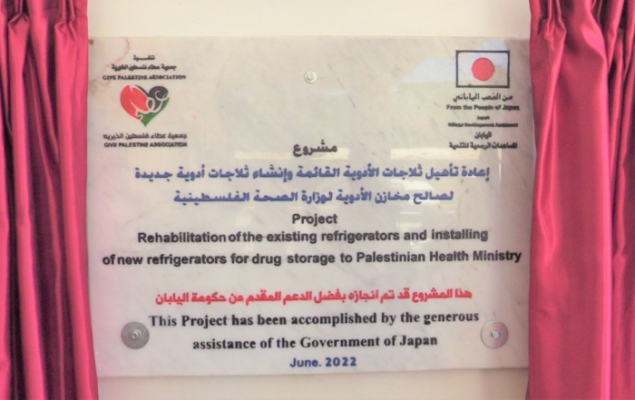 وزارة الصحة تحتفل بتدشين مشروع ثلاجات حفظ الادوية بتمويل من الحكومة اليابانية وتنفيذ جمعية عطاء فلسطين20/06/2022|